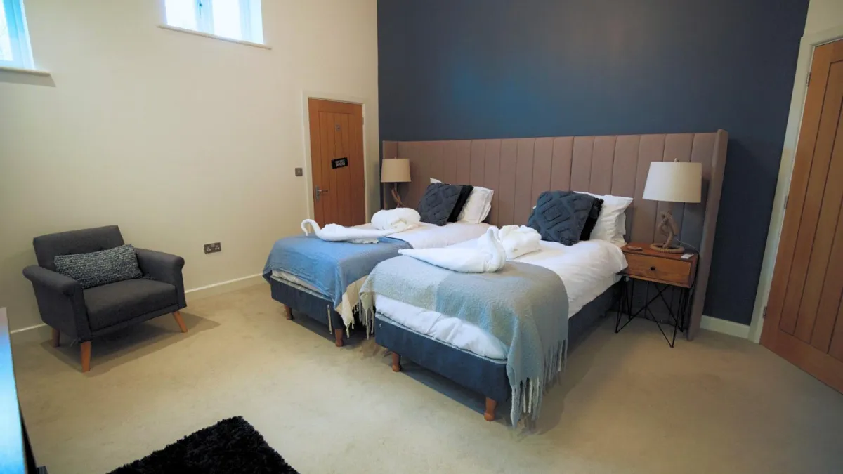 Just minutes from Sherwood Forest and Newark, the retreat offers exclusive use of a beautiful modern residence surrounded by open countryside. Inside, calming design, natural textures and thoughtful touches create a restorative atmosphere, while spa facilities including a sauna, therapy treatment room, indoor hot tub and ice bath invite complete relaxation between activities. Generous communal areas make it easy to dine together, unwind in the lounge, or share stories around the fire pit as evening falls. Every space is designed for connection and calm, a sanctuary to enjoy before and after each celebration.